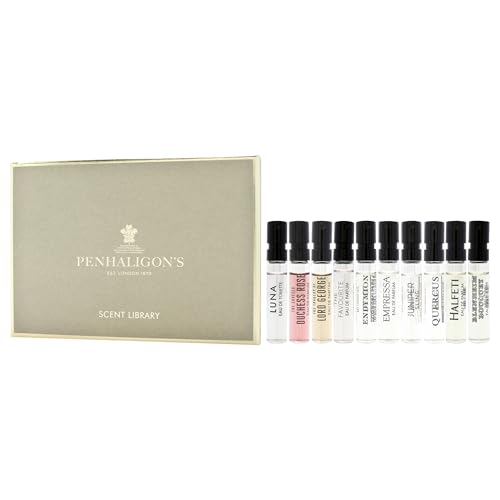 Explora las icónicas fragancias de Penhaligon’s con el exclusivo Estuche de Regalo Bestseller Scent Library, que incluye diez muestras exquisitas.