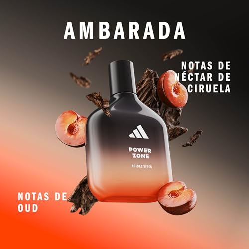 Eau de Parfum Power Force de Adidas: fragancia unisex con notas de oud y ciruela, especiado y ambarino, en envase sostenible.