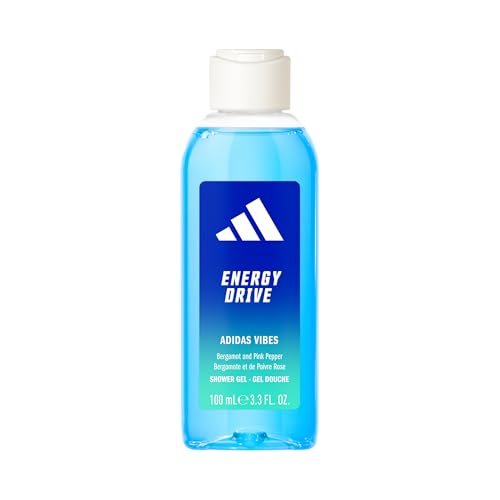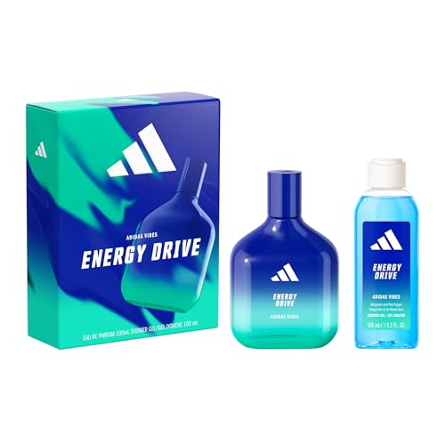 El estuche de regalo Energy Drive de Adidas incluye un Eau de Parfum y un Gel de Ducha con notas de cardamomo y pimienta rosa, ideal para todo tipo de piel.